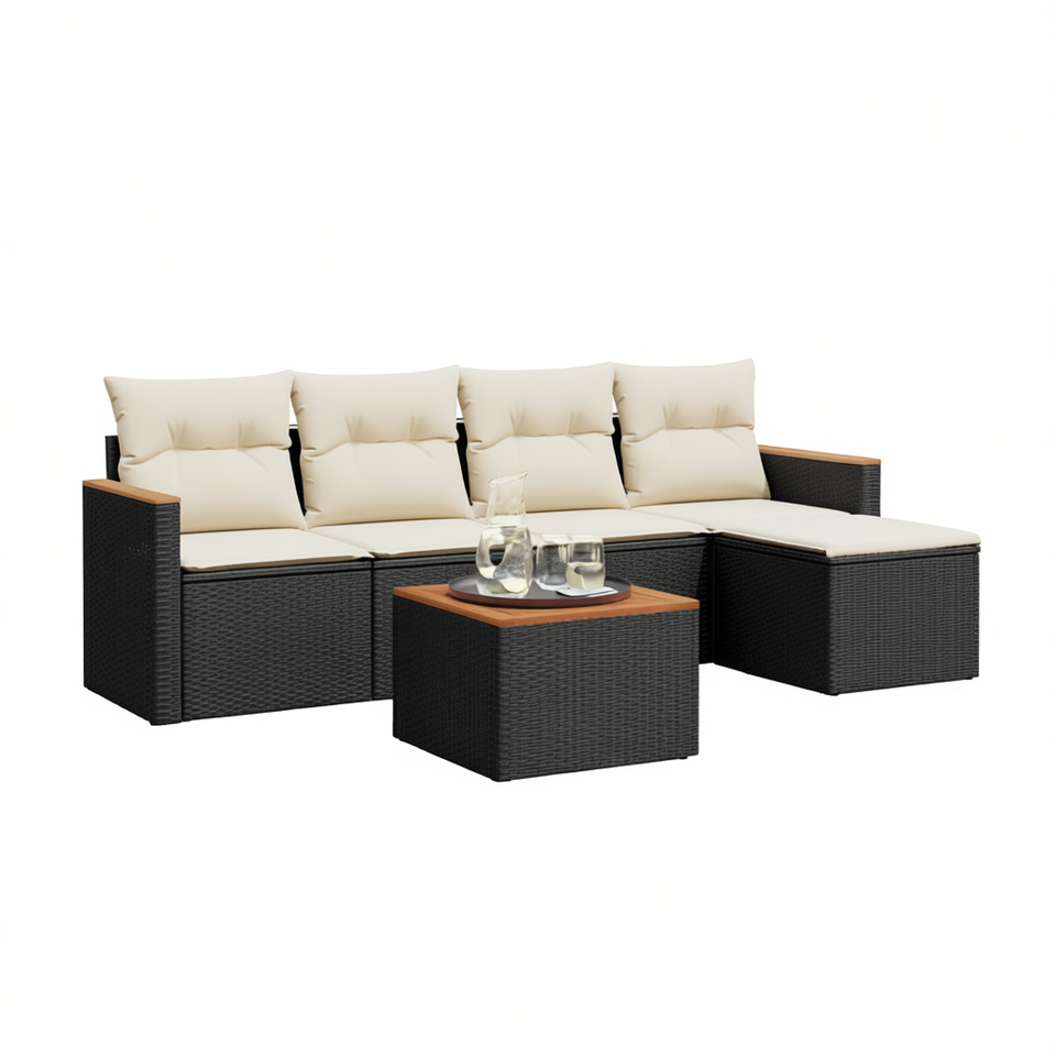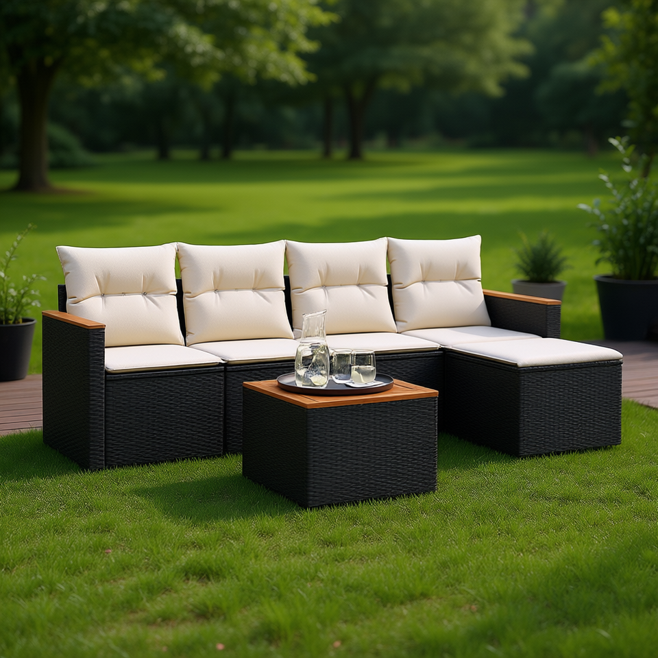 Ensemble de canapés de jardin modulaires en rotin PE noir, meubles d'extérieur durables et élégants avec coussins