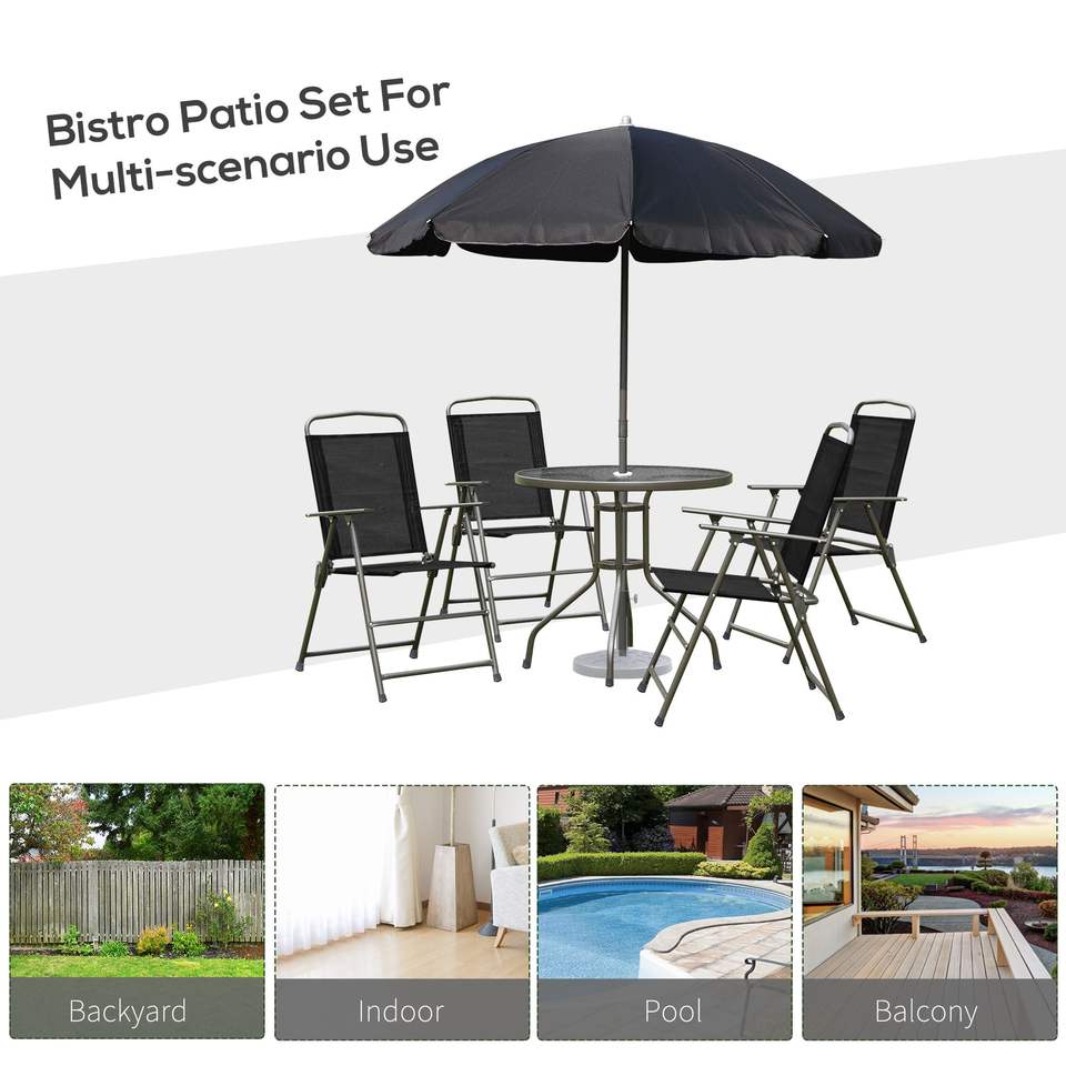 Ensemble de salle à manger de jardin 6 pièces pour 4 personnes, table ronde en verre avec parasol et 4 chaises pliantes, ensemble de jardin extérieur