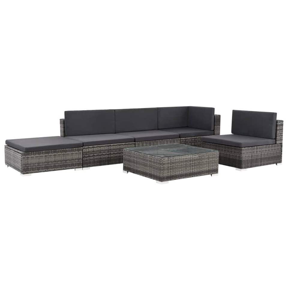 Ensemble de salon de patio en poly rotin 6 pièces avec coussins gris ensembles de jardin