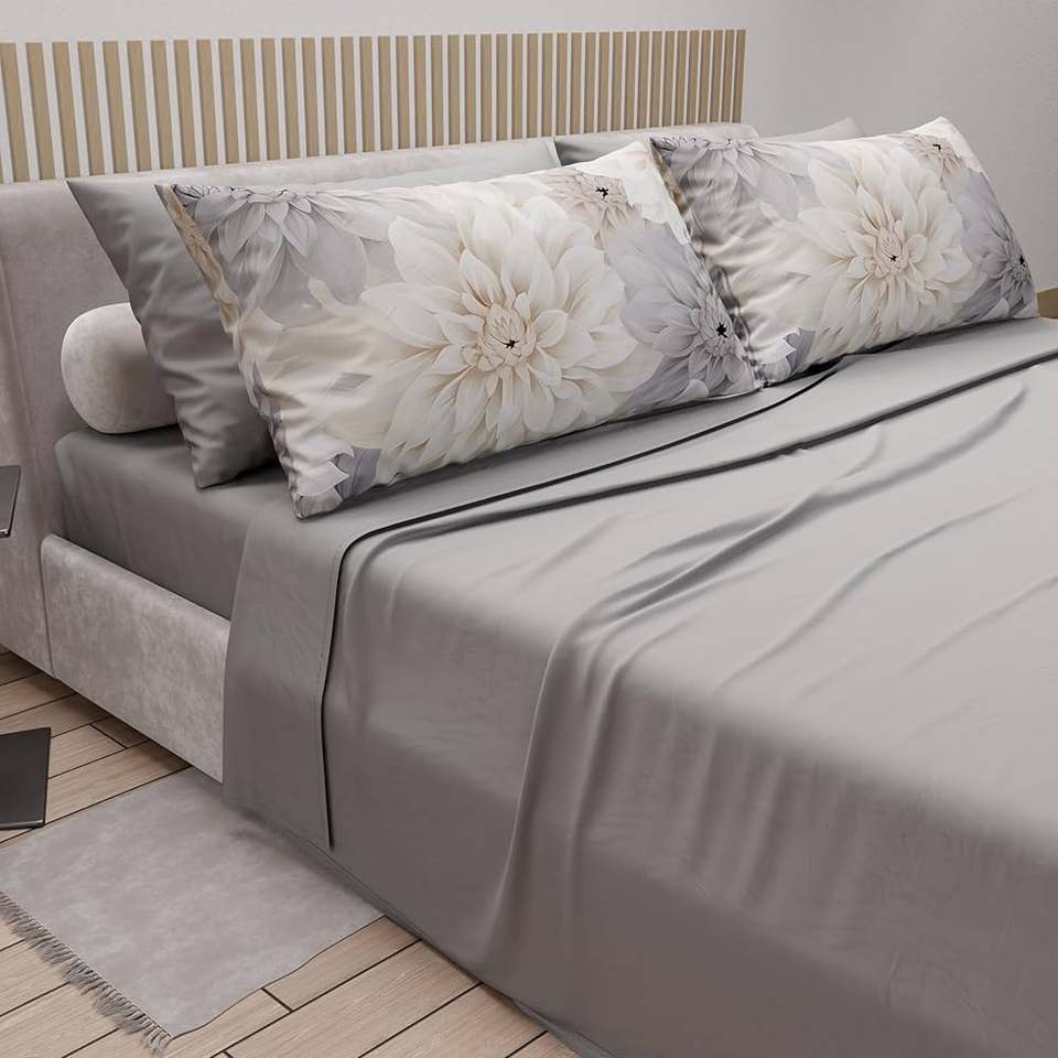Flat Bed Sheet + Fitted Bed Sheet + 4 Pillowcases