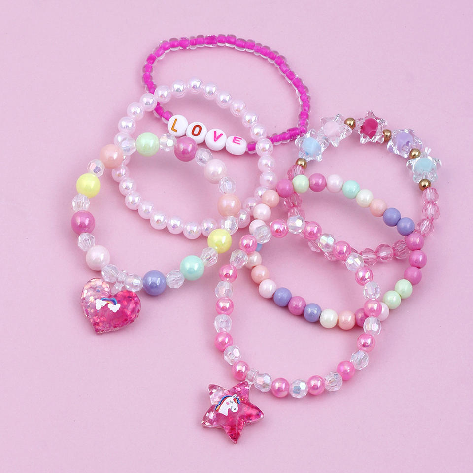 Ensemble de 6 bracelets colorés pour filles, bracelets à perles, bijoux pour petites filles