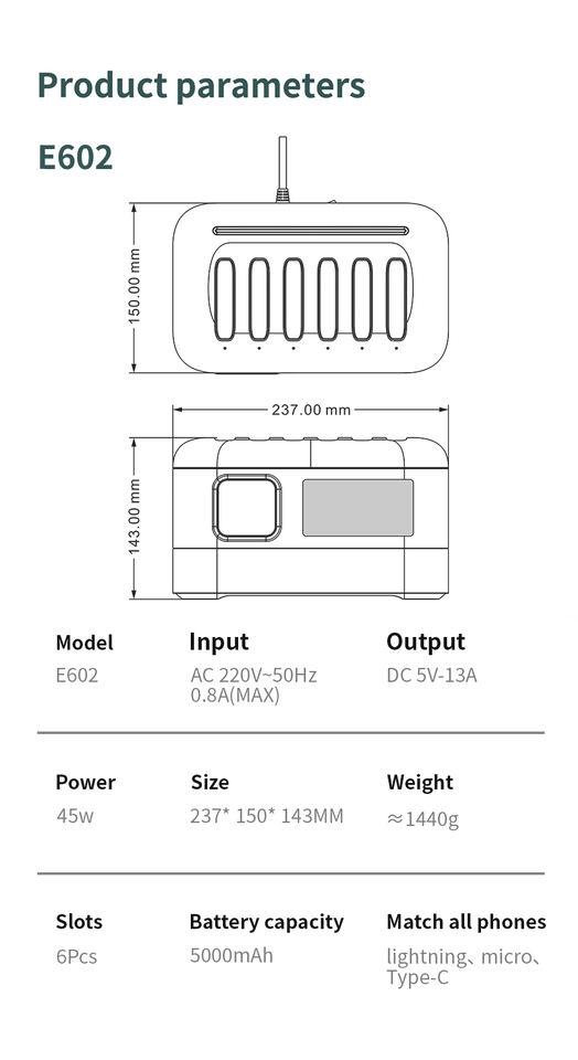 Station d'alimentation portable partagée à 6 ports Pratique Commercial QR Code Location Charge Batterie externe partagée
