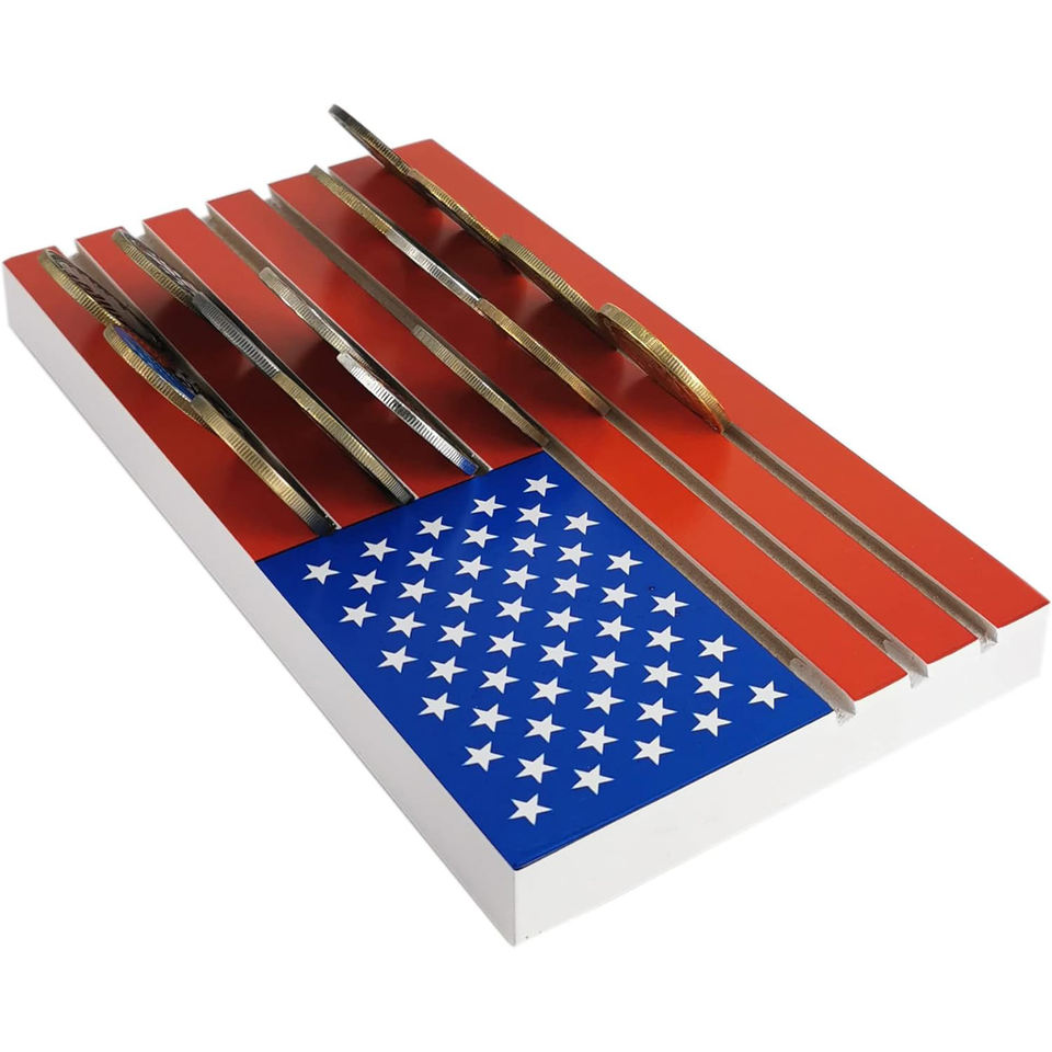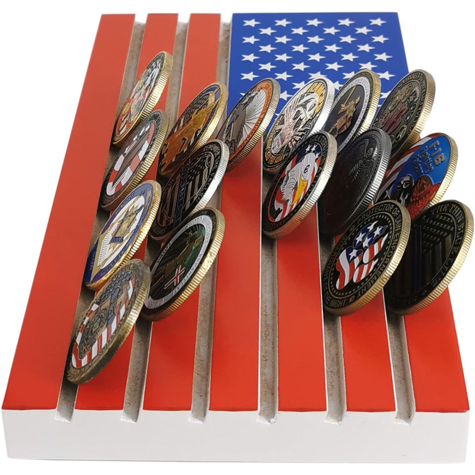 Support de présentation de pièces de monnaie en acrylique à 6 rangées, pour pièces commémoratives militaires, médailles de collection, support de pièces de monnaie avec drapeau américain