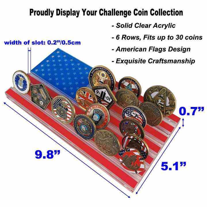 6 Rangées Acrylique Challenge Coin Display Block Military Police Collectible Médailles Stand Drapeau Américain Coin Holder
