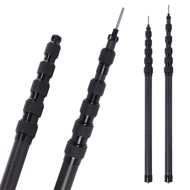 Perche télescopique extensible en fibre de carbone durable de 3 m à 6 sections avec système de verrouillage par rotation pour bâche, idéale pour le camping, la randonnée et les outils de tente.