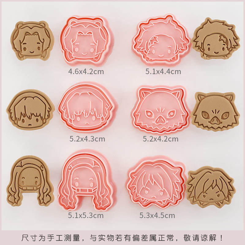 Ensemble de 6 emporte-pièces Demon Slayer, style avatar de dessin animé, japonais, transfrontalier, outil de pâtisserie en fondant 3D