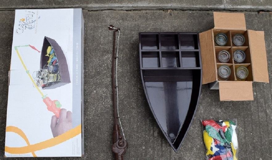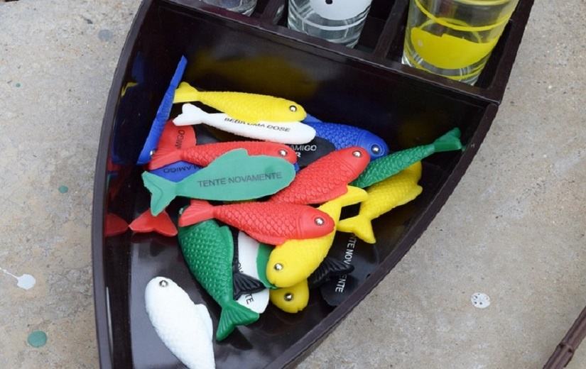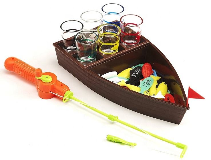 6 verres à liqueur, petit jeu de boisson sur le thème du bateau de pêche avec canne à pêche
