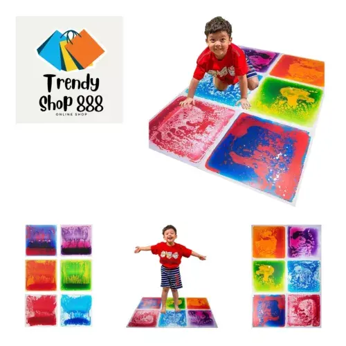 Tapis d'exercice sensoriel multicolores à 6 tuiles, tapis de jeu au sol encastré dans du liquide