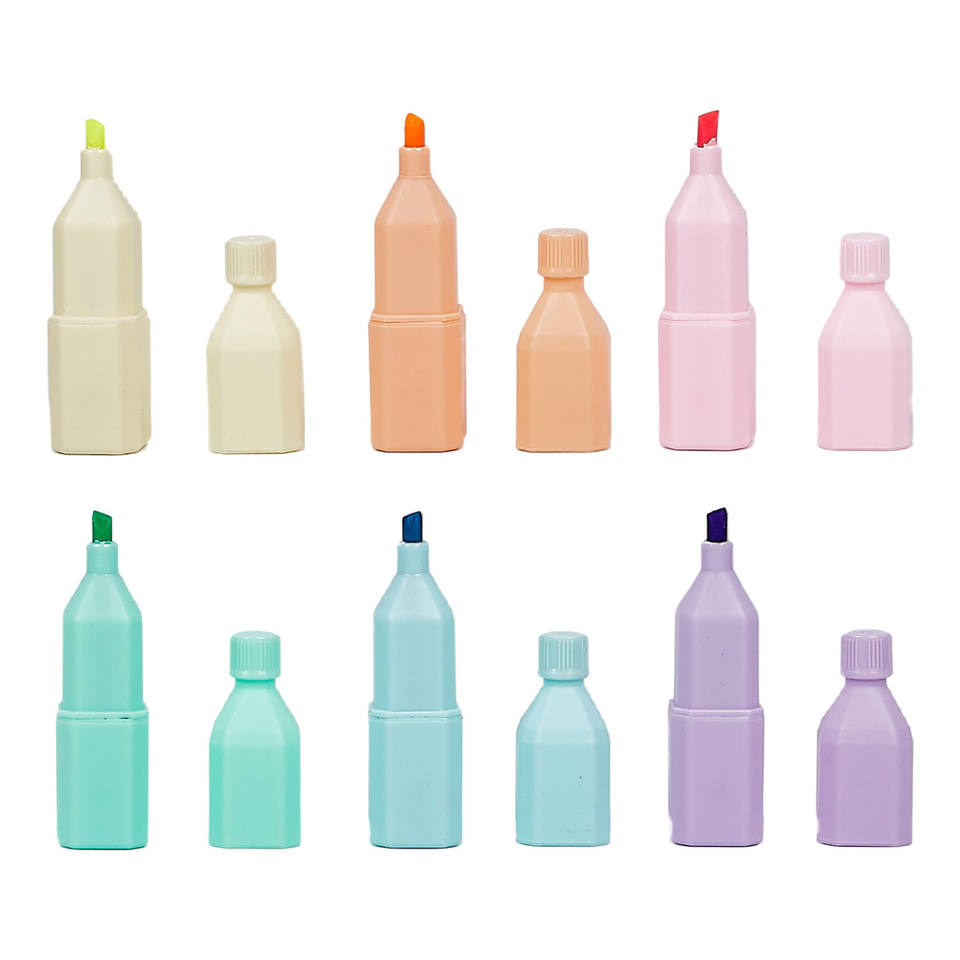 6-color Highlighter Set Mineral Water Bottle Modeling Highlighter Children's Stationery Student Book Pen Modeling Pen