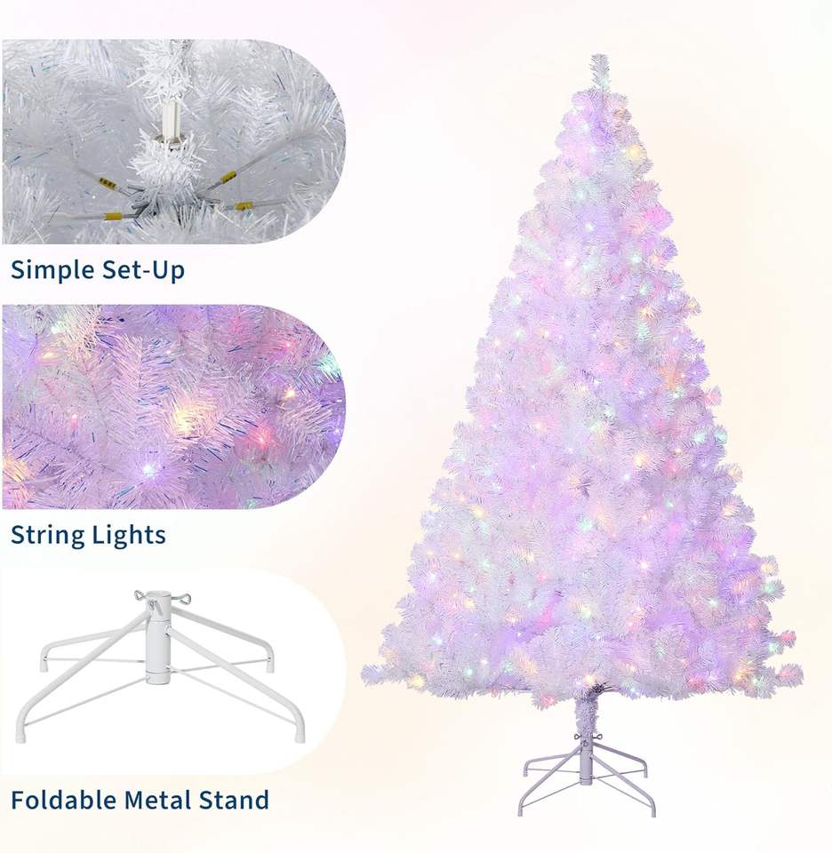 Sapin de Noël blanc de 6 pieds avec lumières, sapin de Noël artificiel pour intérieur et extérieur, décoration de Noël pour la maison, le bureau, les fêtes, les vacances