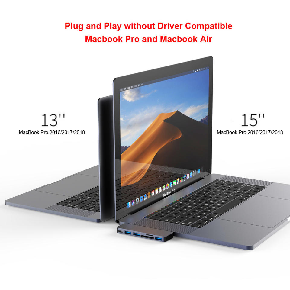 6 en 1 Double USB Type C vers 3 USB 3.0 Lecteur de carte SD TF Thunderbolt 3 Hub Compatible Macbook Pro
