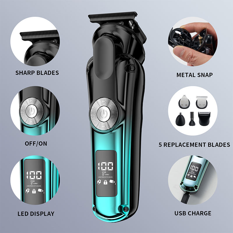 Kit de Tondeuse 6-en-1 Professionnel Rechargeable pour Homme – Tondeuse à Cheveux, Barbe, Corps, Nez et Oreilles pour Coupe à Domicile
