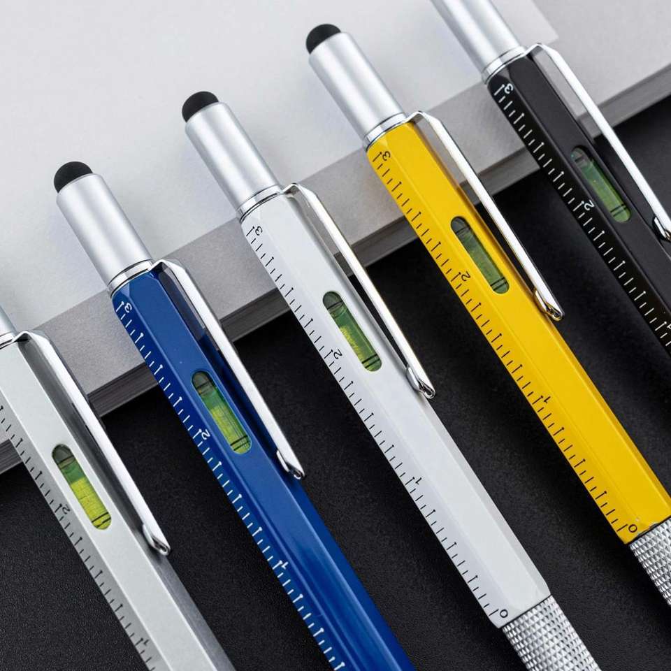 Stylo multifonction 6-en-1 avec niveau, règle, stylet, tournevis et stylo à bille - Cadeau promotionnel idéal