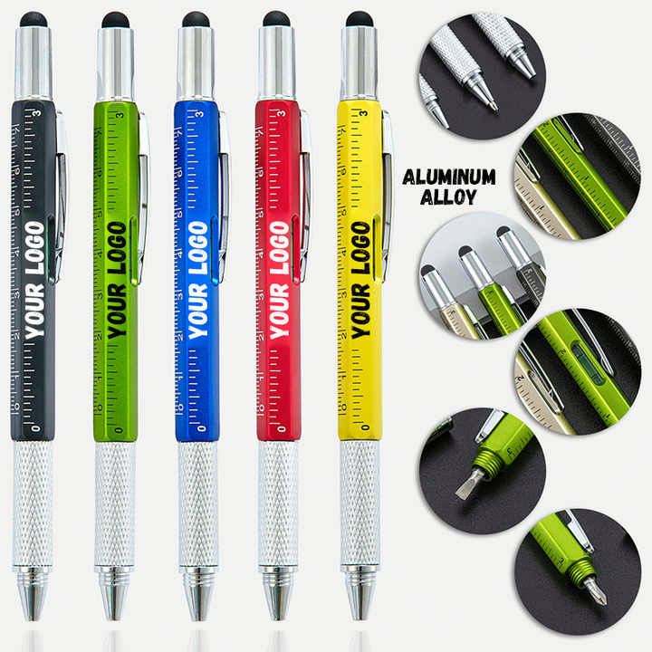 Stylo multifonction 6 en 1, stylo à bille multicolores, outil technologique, stylet métallique, stylo à bille avec niveau et tournevis