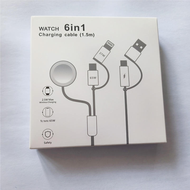 Câble USB-C vers Type-C 6 en 1, charge rapide 65W max pour montre, iPhone, Android, écouteurs et matériau PVC