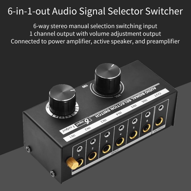 Sélecteur de signal audio 6 entrées/1 sortie, commutateur de sélection de signal audio pour écouteurs et haut-parleurs avec contrôle du volume