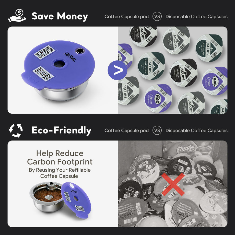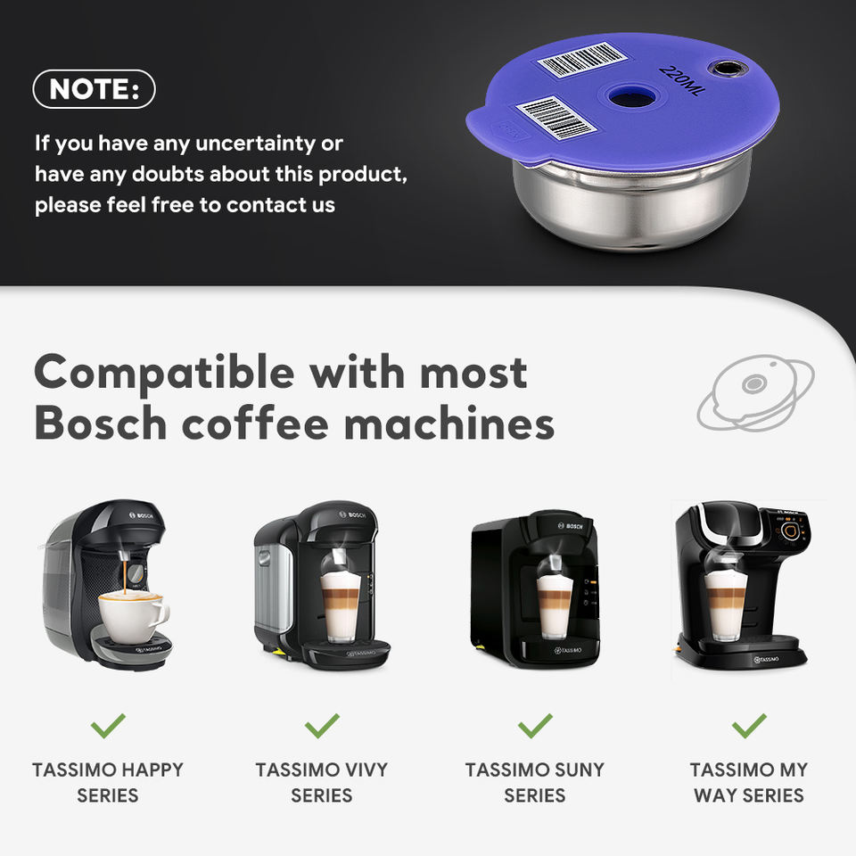 Capsules de café réutilisables 60/180/200/220ml, dosettes en acier inoxydable, filtre rechargeable Compatible avec bo-schs Tassimo