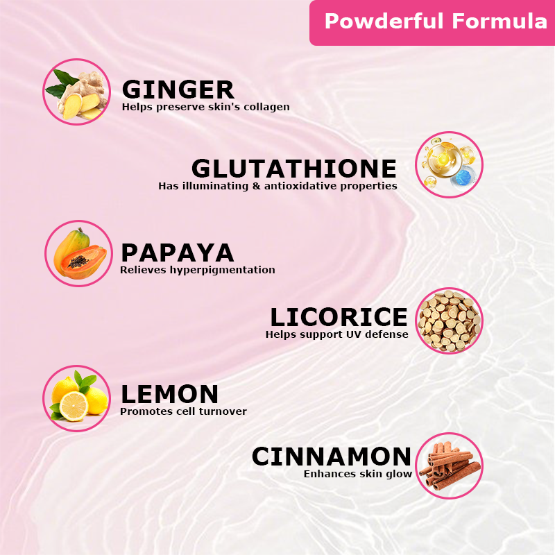 Main Ingredient:Glutathione, Lemon, Ginger, Cinnamon, Papaya Extract
