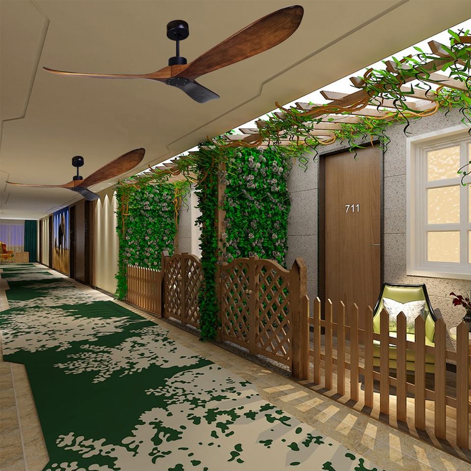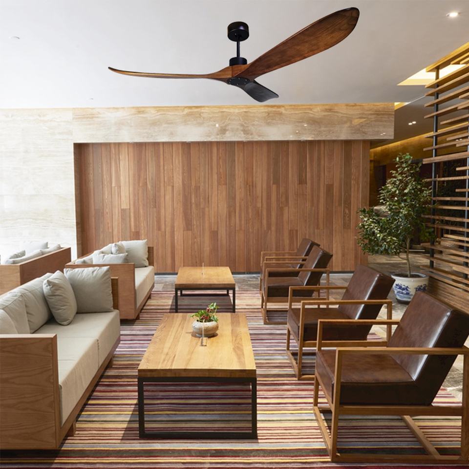 Ventilateur de plafond en bois à télécommande à 5 vitesses, style sud-est asiatique et américain, moteur CC à faible consommation d'énergie, 60 pouces, 5 pieds