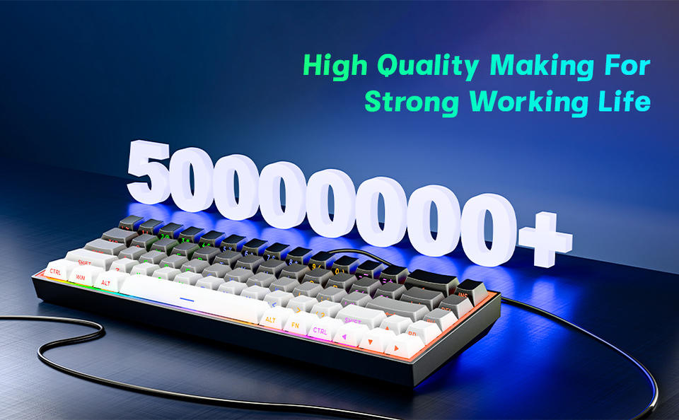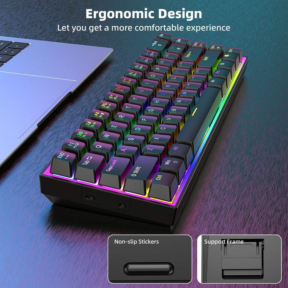 Clavier de jeu mécanique USB-C filaire 68 touches avec interrupteurs mini RGB bleus 60 %, échangeables à chaud, anti-ghosting, compatible PC, ordinateur portable et ordinateur de bureau