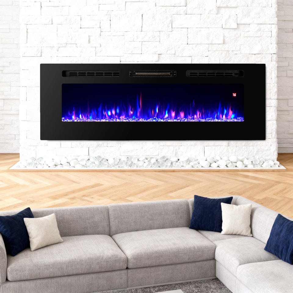 Cheminée électrique murale intérieure moderne de qualité 60 pouces avec effet de flamme artificielle en cristal