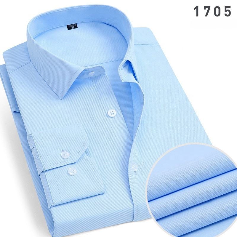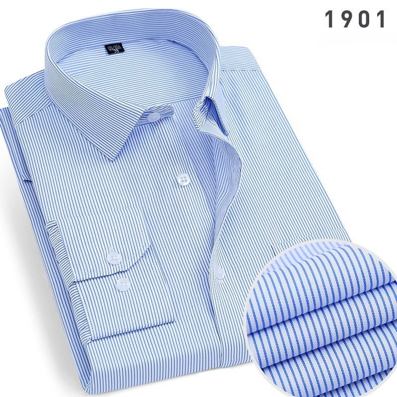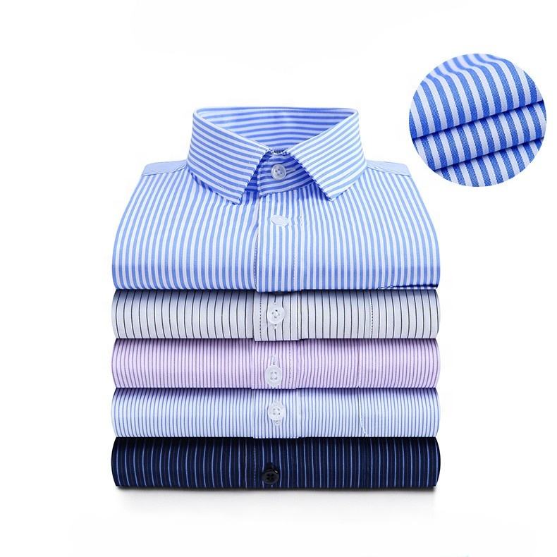 60% Polyester 40% Cotton Men's Long Sleeve Solid Color Business Dress Shirt Office Formal Wear Striped Button-Up Shirt for Men