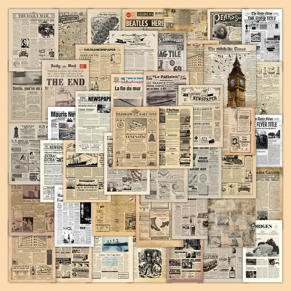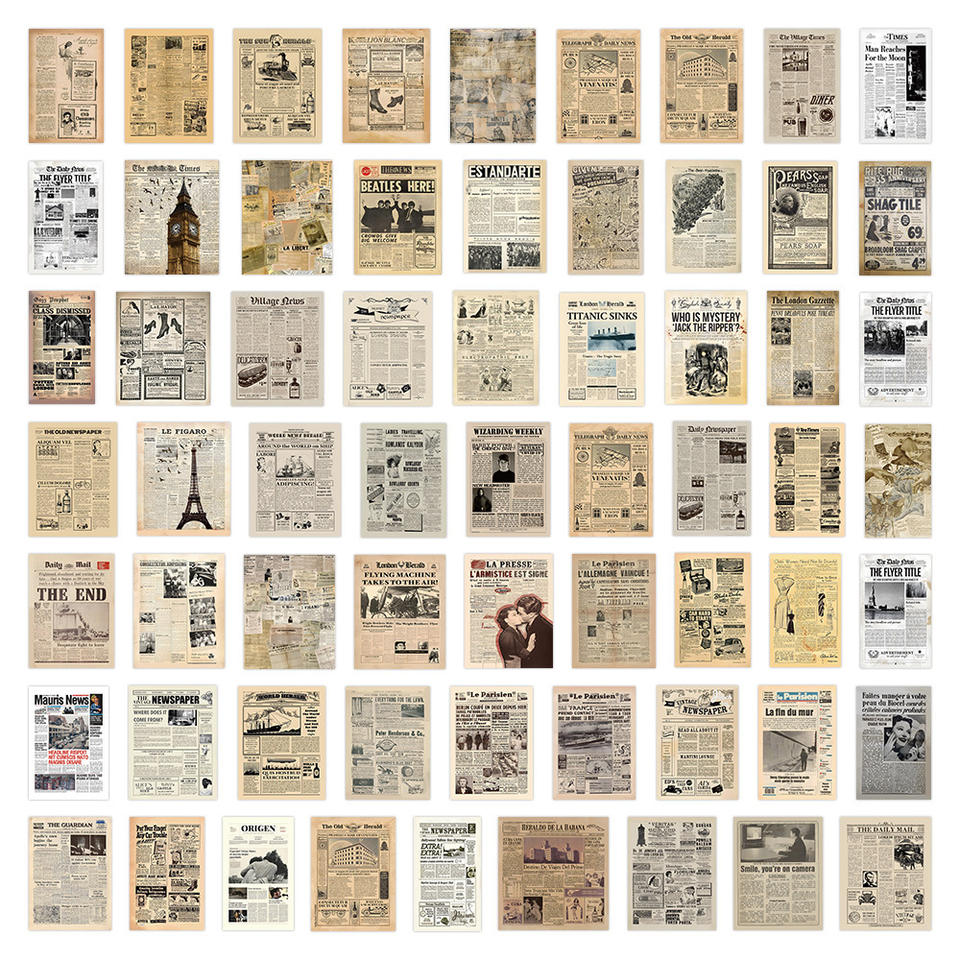 60 autocollants décoratifs imperméables, style affiche rétro, motif journal ancien, magazine européen et américain, pour carnet et fond d'écran