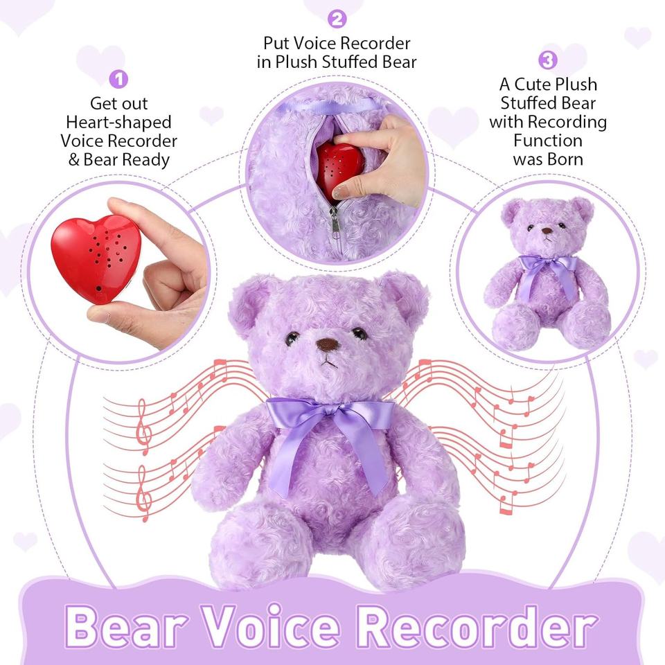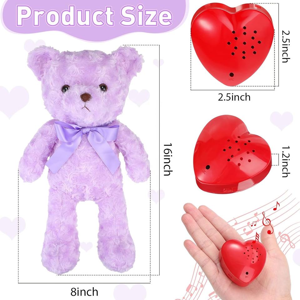 Module d'enregistrement vocal 60 secondes, ours en peluche doux et mignon de 16 pouces avec boîte à musique à fermeture éclair, enregistrable, cœur