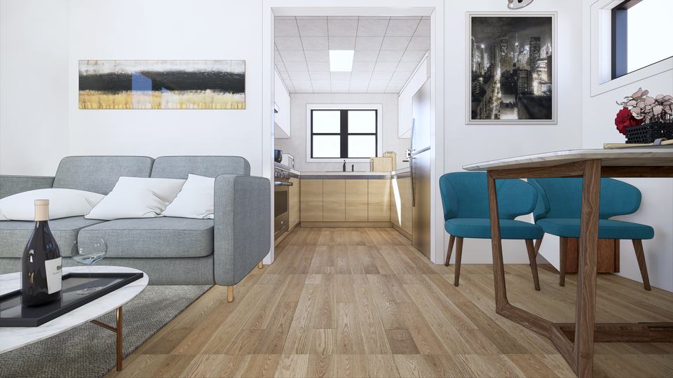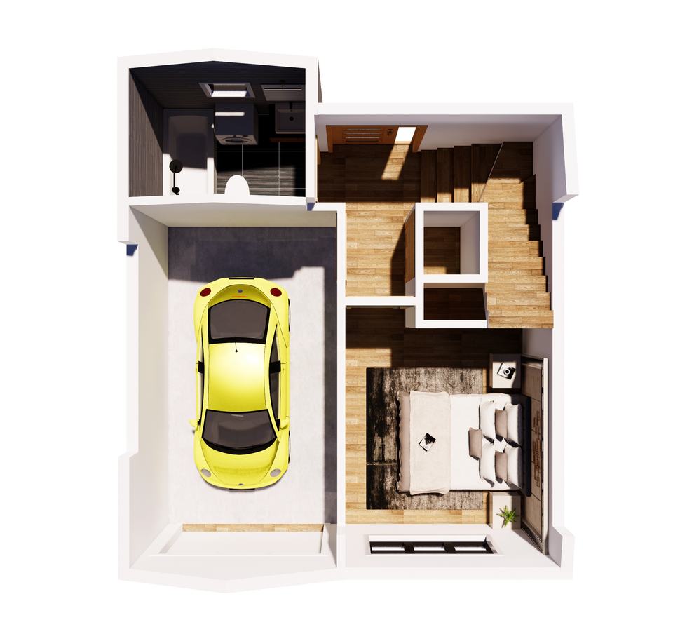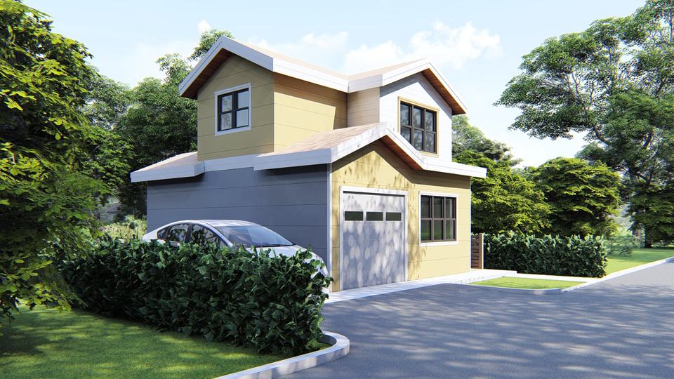 Maison en bois préfabriquée de 60 mètres carrés avec panneaux isolés structurels, une chambre et un garage pour jeune couple
