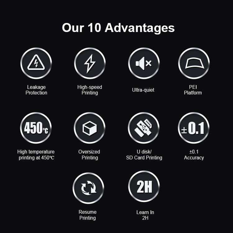 Multi-axes, Lit chauffant, Double extrudeuse, Reprendre L'impression, Filament De Détection, Mise à niveau automatique, Imprimante de la haute précision 3dCaractéristiques
