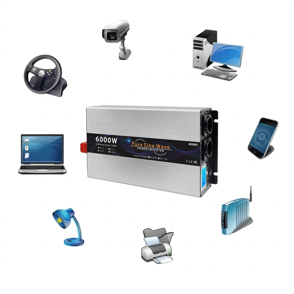 Convertisseur de puissance à onde sinusoïdale pure 6000W, 12V/24V/48V DC vers 110V/220V, pour système solaire domestique, camping-car et hors réseau