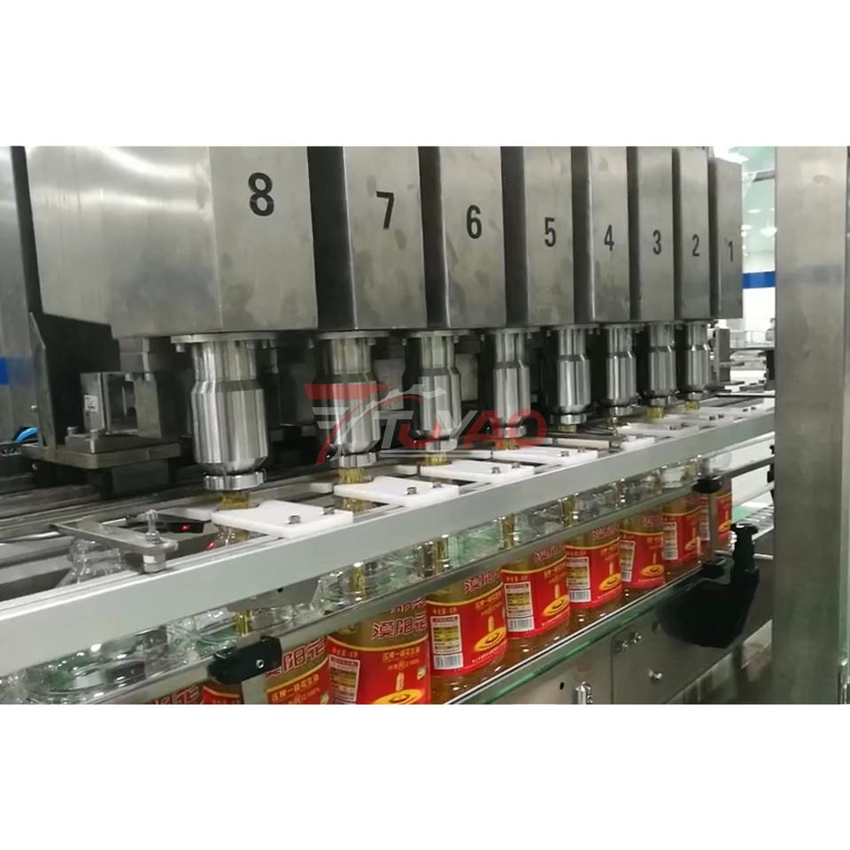Machine de remplissage linéaire d'huile comestible 600BPH 5L Ligne de remplissage d'huile de cuisson Machine de remplissage d'huile d'olive Type de cellule de charge