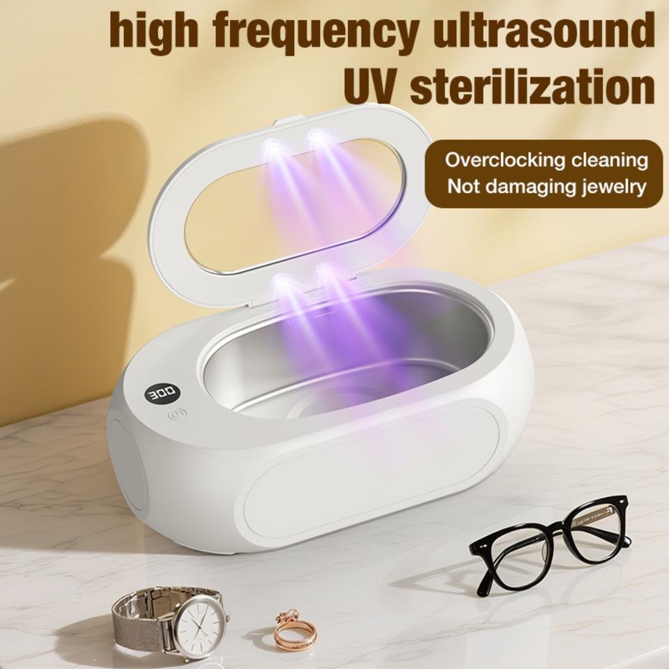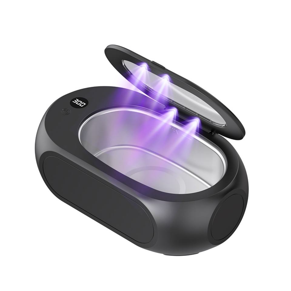 Nettoyeur ultrasonique UV 600 ml pour bijoux et lunettes, 45 kHz avec source d'alimentation électrique UVC, temps de nettoyage réglable 600 s