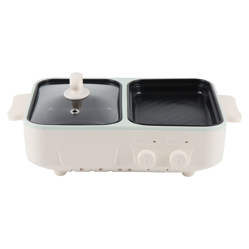 Grill électrique et marmite 2-en-1 mini 1L 600W+700W avec contrôle de température séparé, style coréen