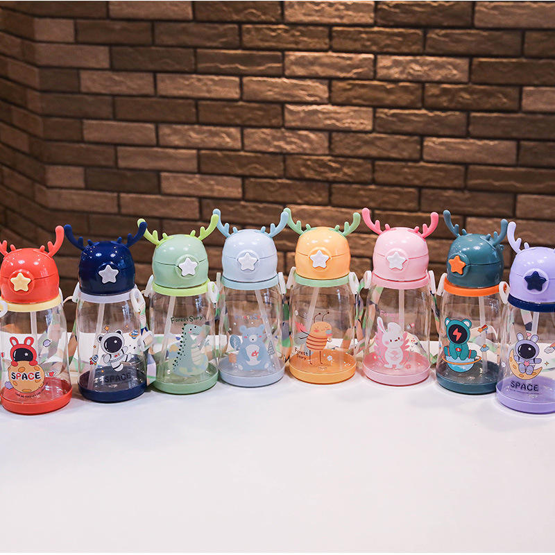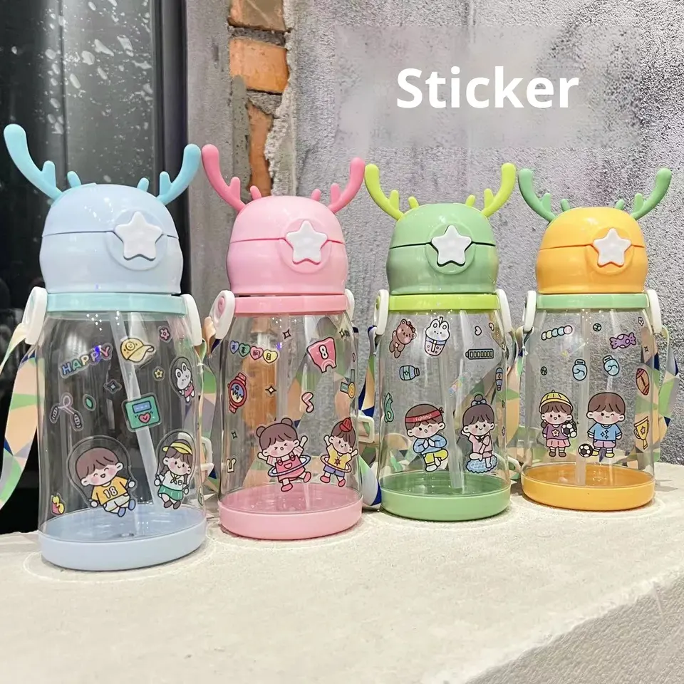 Gobelet à eau pour enfants en plastique PC sans BPA de 600 ml avec sangle de dessin animé mignonne, cadeau promotionnel d'été pour la salle de sport pour enfants, pour le lait et le jus