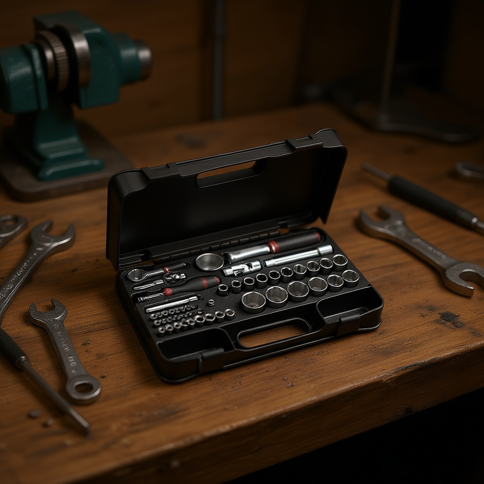 Assortiment de douilles hexagonales 607 1/4 1/2 EB dans un coffret ABS, 56 pièces pour une utilisation polyvalente