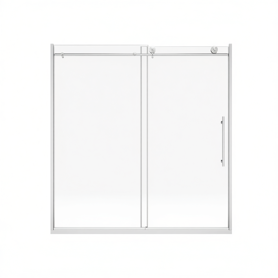 Porte de douche coulissante sans cadre, verre 8 mm, acier inoxydable 304, fermeture douce réglable, design rectangulaire