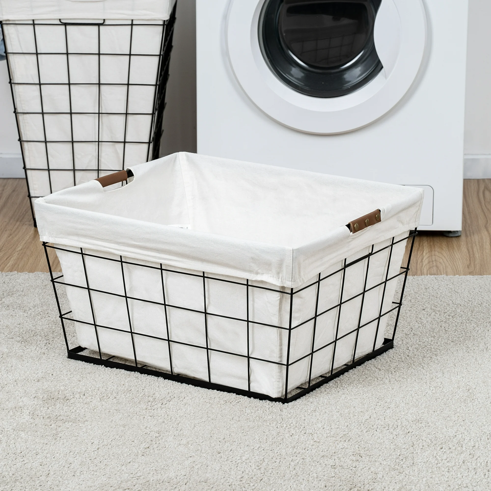 Panier à linge rectangulaire de style américain 60L, design durable et flexible, avec doublure amovible en polyester et structure en fil d'acier pour le rangement