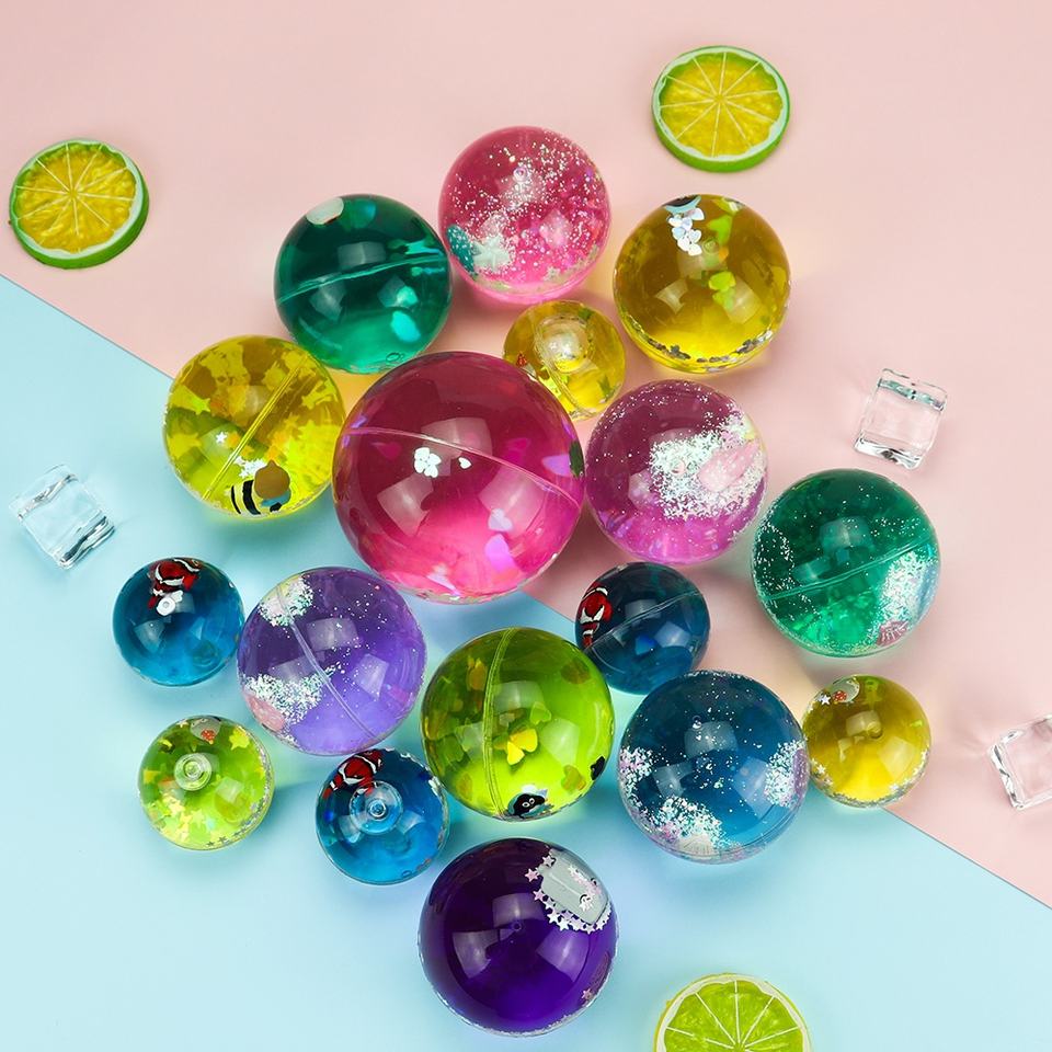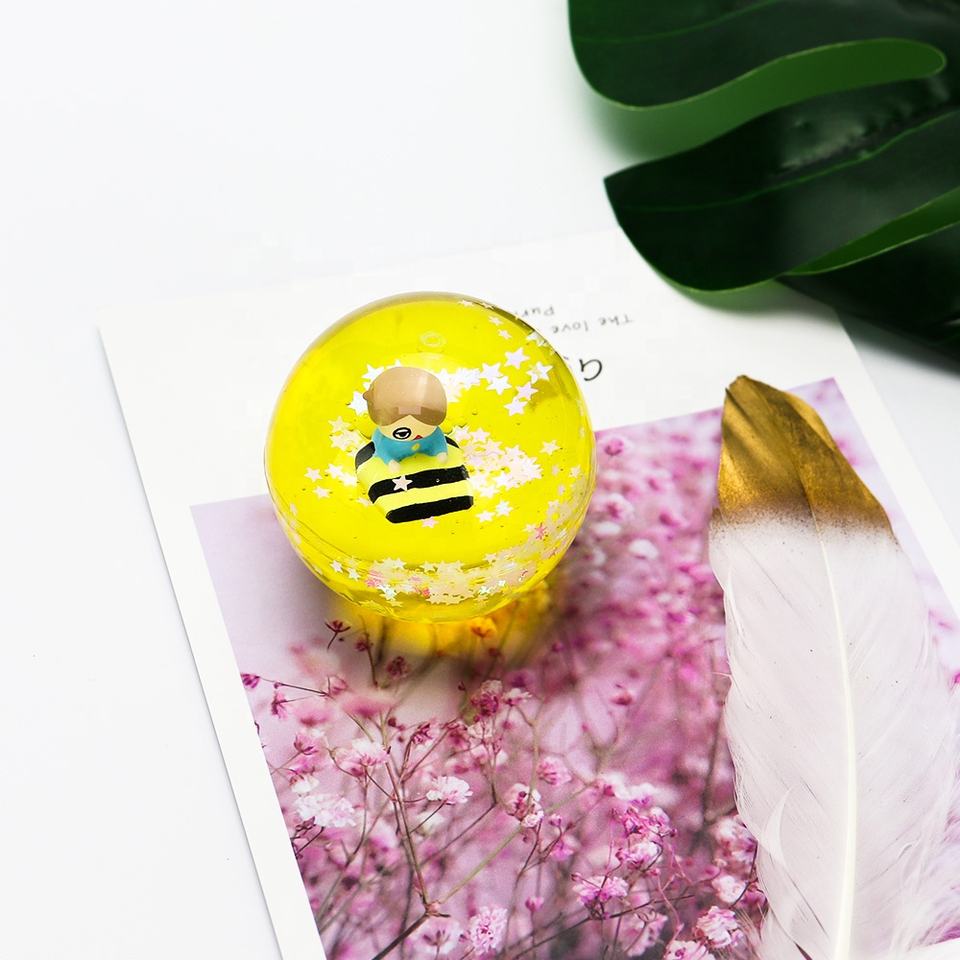 60MM TPU Liquide Paillettes D'huile Flottant Boule de Rebond D'eau Jaune