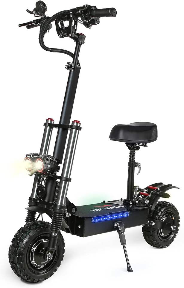 60V 38AH27AH Electric Scooter Adult 6000W Dual Motors Max Speed 45-60 Miles Foldable Electric Scooter with Seat, Dual Suspension