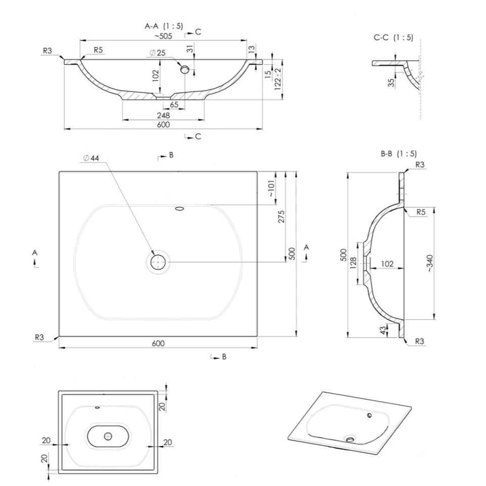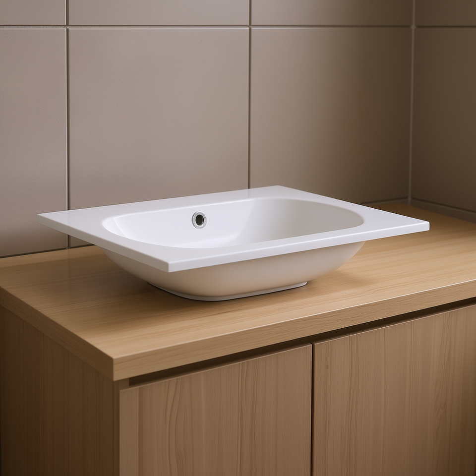 Lavabo de console en céramique de 60 cm sans trou pour robinet, design moderne, facile à nettoyer, lavabo à poser sur comptoir