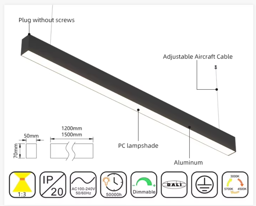 Lampe suspendue linéaire à LED