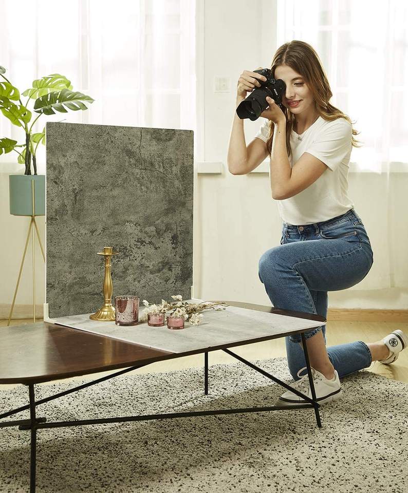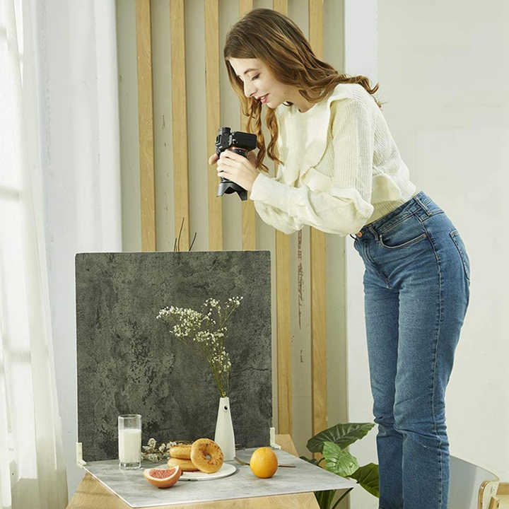 Toile de fond plastique étanche double face 70x60cm, pour photographie de nourriture, bijoux, petits produits