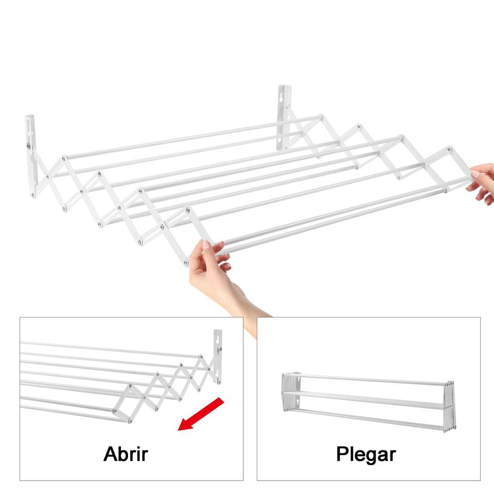 Séchoir à linge mural extensible Manemi en acier blanc, 60 cm, double niveau, pliable, intérieur/extérieur, design minimaliste pour vêtements
