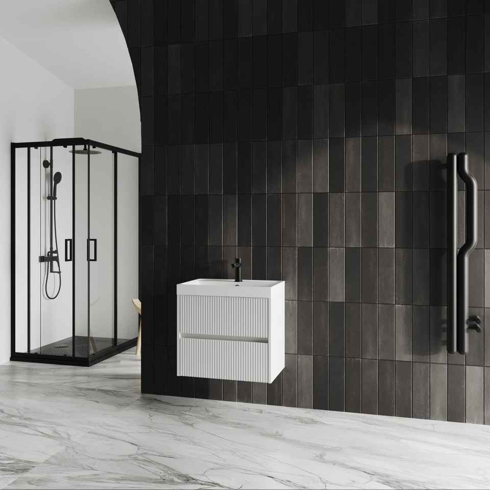 Lavabo Cannes côtelé blanc mat de 60 cm avec meuble de salle de bain