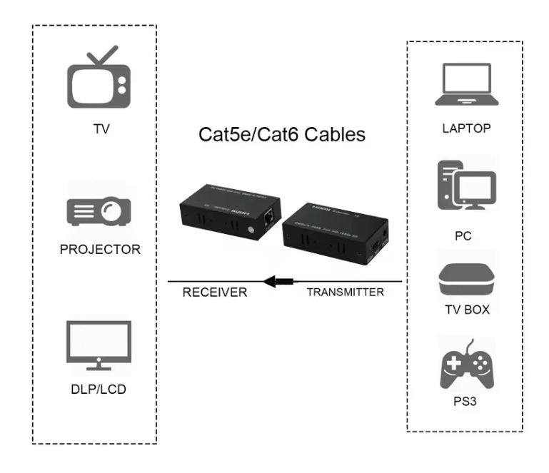 60m hd Extender Network Extensor à RJ45 Ethernet Adapter 1080P 60HZ HDTV Extender Cat5E/6 Extend HDTV Extensor