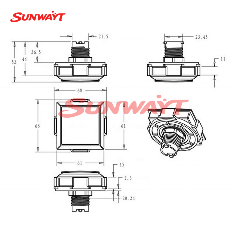 Bouton carré LED de 60 mm, bouton poussoir pour machine de jeu d'arcade