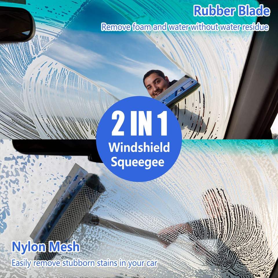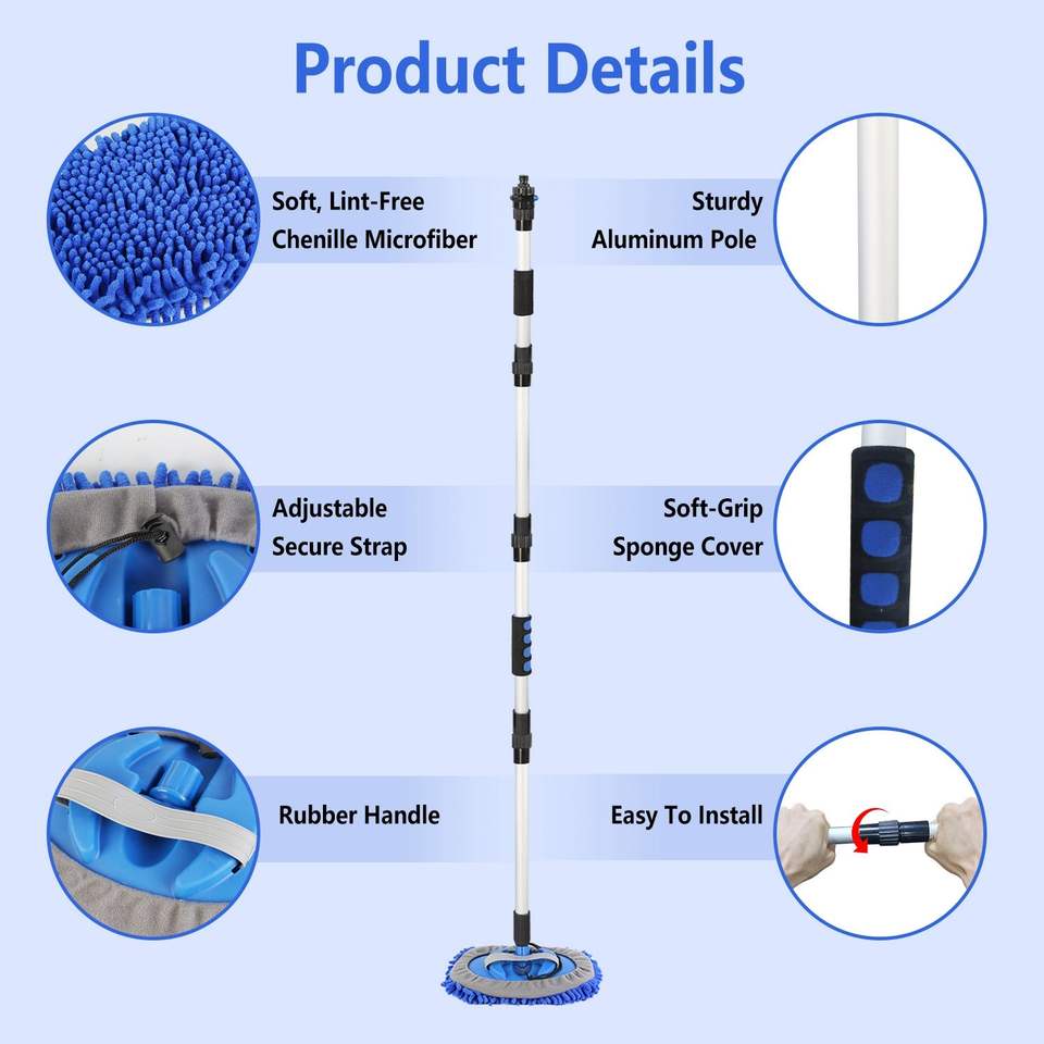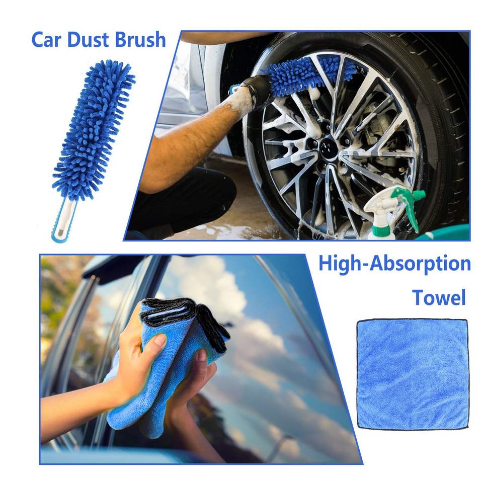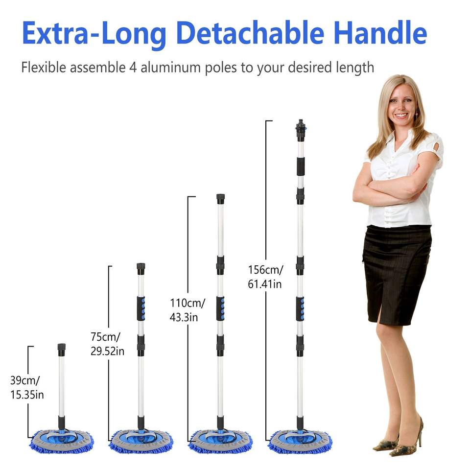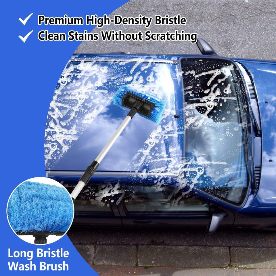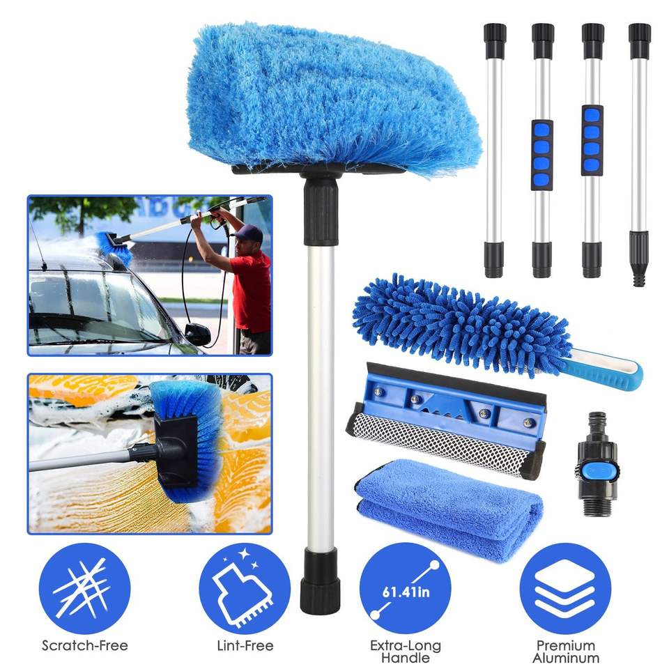 Kit de nettoyage automobile 5 pièces : balai serpillière en microfibre souple à long manche détachable de 61 pouces, brosse, gant de lavage, raclette pour pare-brise, plumeau et outil pour roues