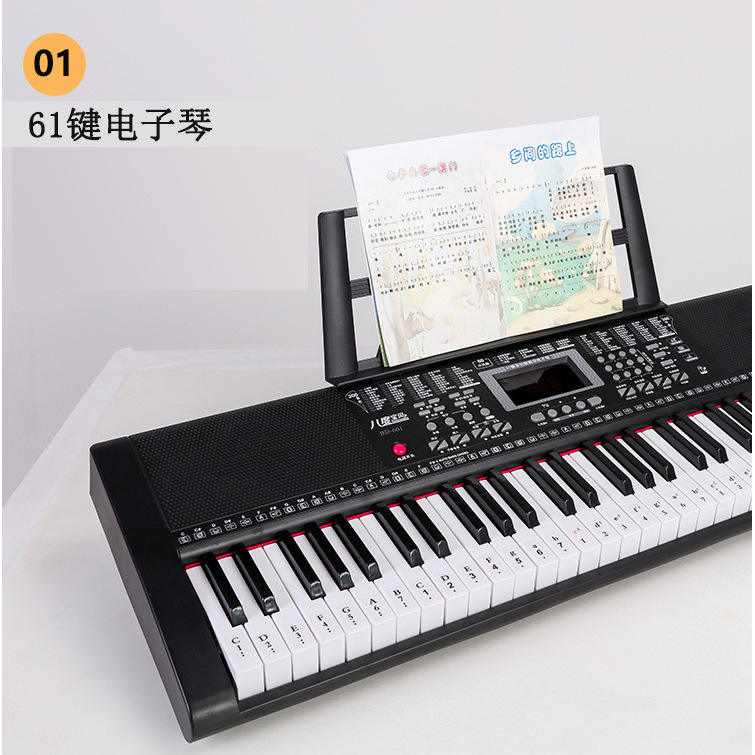Clavier électronique à 61 touches avec microphone pour débutants, piano pour adultes, 85cm x 29cm x 9.5cm, matériau ABS, prise US