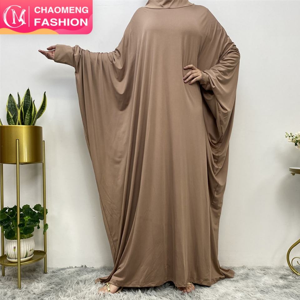 6198# Solid Color Batwing Sleeves With Hoodies Elegant Prayer Women Abaya Dress Eid Modest Khimar Hijab Abaya